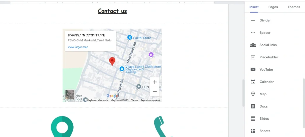 - கூகிள் மேப்ஸ் (Google Maps): உங்கள் கடை அல்லது அலுவலகம் எங்கே இருக்கிறது என்று காட்ட வேண்டுமா? உங்கள் முகவரியை கூகிள் மேப்ஸில் தேடி, அதை உங்கள் தளத்தில் சேர்க்கலாம்.